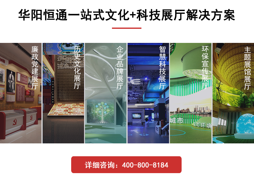 以上三种就是企业展厅设计中的最常见的规划,基本上企业展厅的规划方向大多都不会脱离这三种,很多业就是按照这三种分类,分析自己需求进行选择和展厅设计的。大家可以根据所在企业的要求和特点,选择适合自家的企业展厅形式。更多内容,欢迎关注华阳恒通。